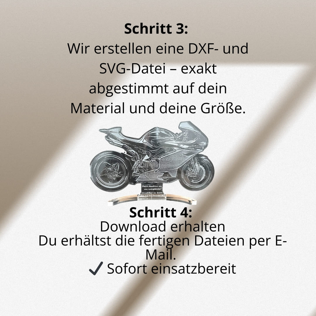 - Download erhalten: Du bekommst die fertigen Dateien per E-Mail – sofort einsatzbereit.